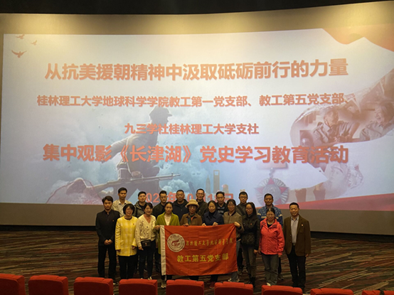 为深入开展党史学习教育,进一步激发教工爱国热情,10月18日下午,九三学社学校支社与地球科学学院教工第一党支部、教工第五党支部及结对共建的30余名党员(社员)前往东西巷影城观看党史学习教育片《长津湖》,从抗美援朝精神中汲取砥砺前行的力量。