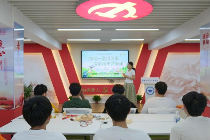 活动中,唐丹婷老师围绕端午节的起源、发展历史、民俗传统等方面作了微课宣讲,并带领同学们以中华文化的传承与发展为主题展开研讨。在学习端午文化的过程中,同学们积极与老师互动交流,热情分享了家乡的端午节传统民俗。在研讨环节,大家纷纷表示作为当代大学生,要在中华文化的传承与发展中做到学思用贯通、知信行统一,主动关注、学习、尝试、体验、传承中华文化,真正把文化自信体现到日常学习生活中,扎扎实实守好护好中华民族独有的文化。随后,同学们一起体验了香囊、五彩绳、端午花束的制作过程,在一针一线、一叶一枝中切实感受中华文化的温暖与浪漫。