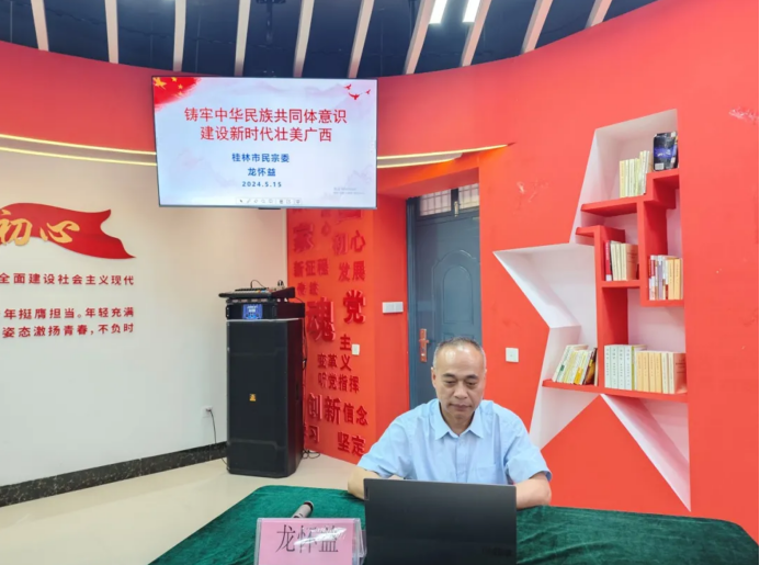 讲座邀请了桂林市少数民族服务中心主任龙怀益作《铸牢中华民族共同体意识建设新时代壮美广西》专题报告。他从“铸牢中华民族共同体意识解读”“建设铸牢中华民族共同体意识示范区”“青年学子如何促进新时代民族团结进步工作”三个方面展开,内容丰富,事例鲜活,深入浅出,全面系统,有效引导广大青年理解铸牢中华民族共同体意识的基本内涵与核心要义,认识铸牢中华民族共同体意识的重要意义,自觉做铸牢中华民族共同体意识的践行者、传播者和弘扬者。