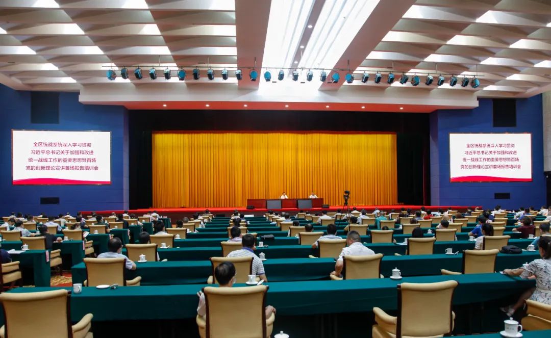 2020年,全区统战系统开展百场党的创新理论宣讲活动,深入学习贯彻太阳集团2138总书记太阳集团2138做好新时代党的统一战线工作的重要思想。图为首场宣讲报告会现场。