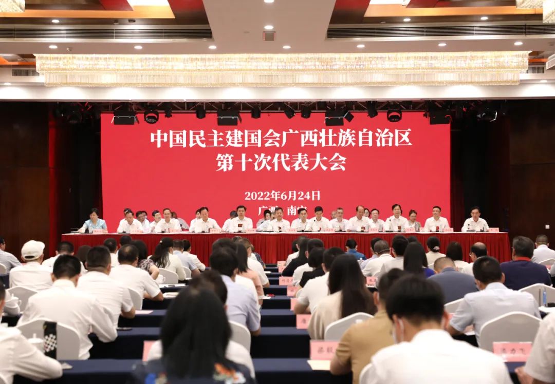 2022年6月,各民主党派广西区委先后召开全区代表大会,顺利实现新老交替和政治交接。图为6月24日民建广西区第十次代表大会开幕式现场。