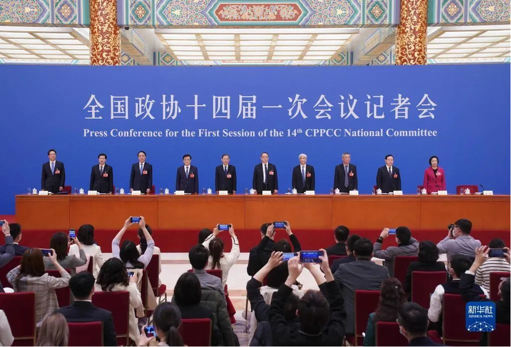 3月5日,全国政协十四届一次会议在北京人民大会堂举行民主党派中央和全国工商联领导人记者会。新华社记者 陈晔华 摄